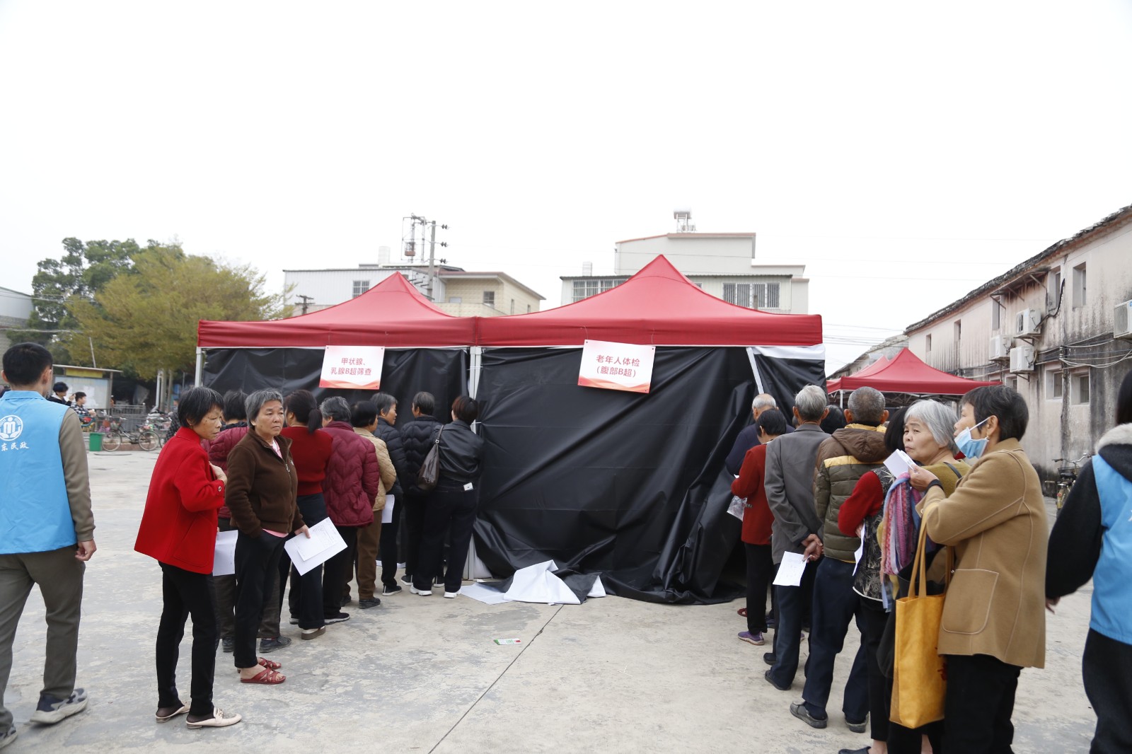 在临时搭建的B超检查室外,村民们有序排队。预约成功的村民手拿号码牌,在导诊人员的引导下耐心等候。这场筛查不仅是提供一次检查的机会,更是一份关于健康、关于未来的安心承诺。